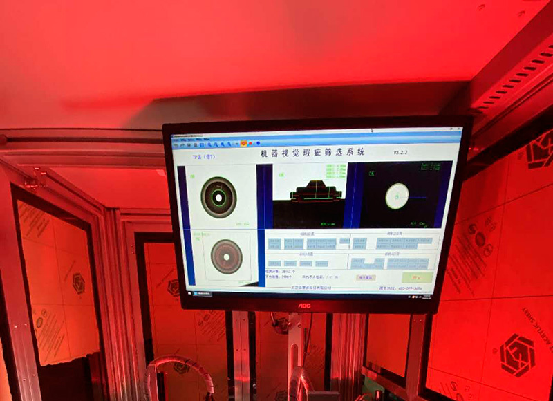 本實用新型通孔檢測設備,解決了溫控器陶瓷導向架中心孔變形、粉塵、毛刺、堵孔等不良問題,多年來可做到客戶零投訴率?! 〖夹g領域:  本實用新型屬于陶瓷產品加工技術領域,具體涉及一種陶瓷產品通孔檢測設備?! ‖F(xiàn)有技術存在以下問題:現(xiàn)在的陶瓷產品往往通過人工進行通孔檢測,進而進行篩分,造成檢測篩分時間長,效率低、成本高、易漏檢?! 嵱眯滦蛢热荩骸 榻鉀Q上述背景技術中提出的問題。本實用新型提供了一種陶瓷產品通孔檢測設備,具有檢測快速,篩分便攜,自動化程度高,分辨率高,無漏檢等的特點?! 閷崿F(xiàn)上